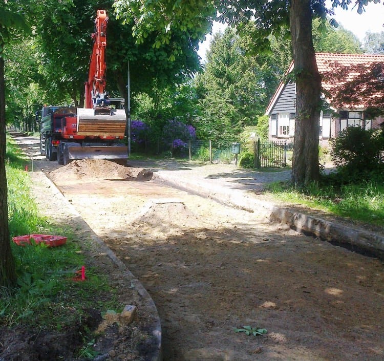 In opdracht van de gemeente Westerveld zijn we dinsdag 4 juni 2013 begonnen met de reconstructie van de Kastanjelaan in Diever. De bestrating zal worden vervangen door nieuwe gebakken stenen.