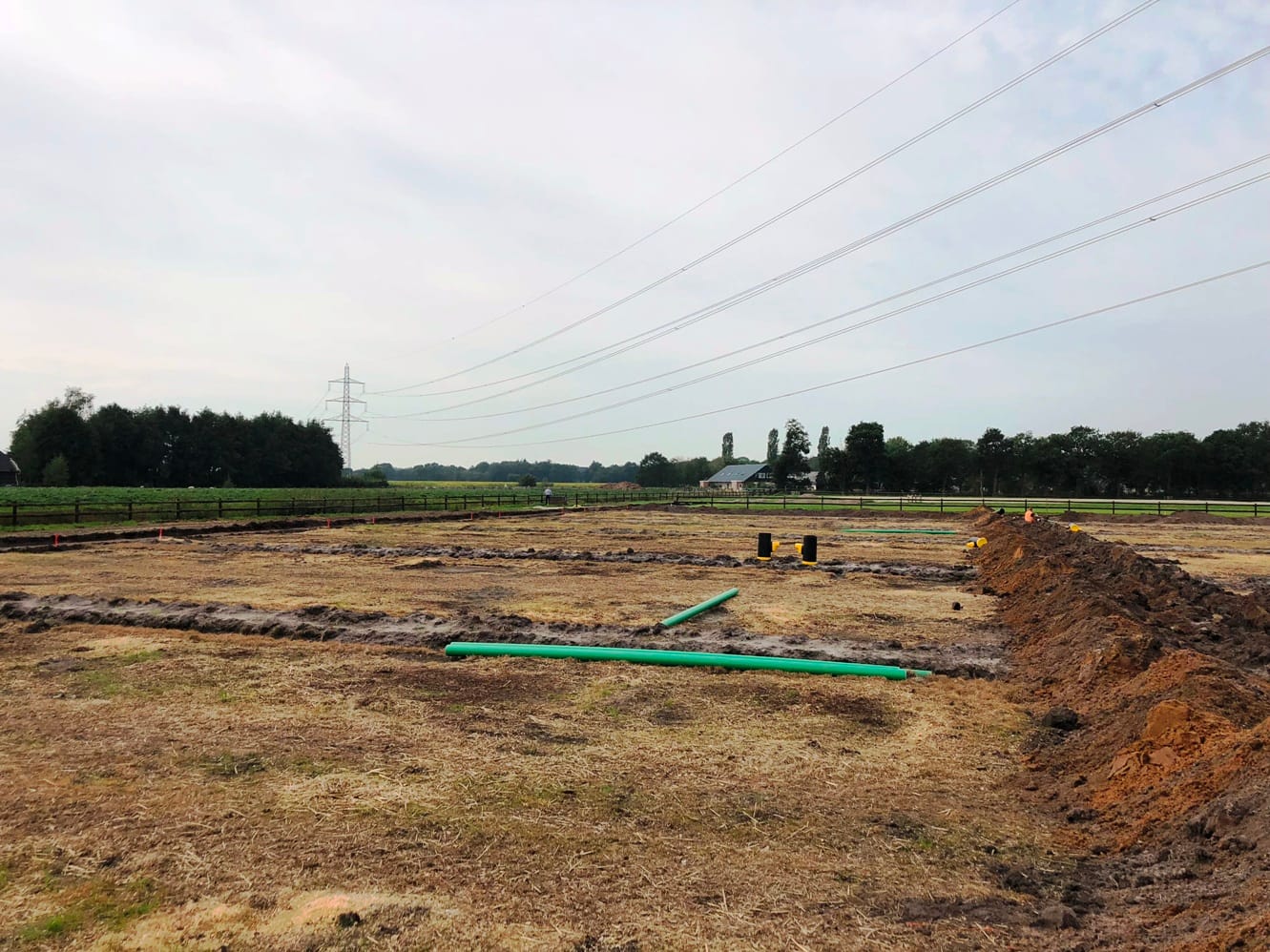 Op het terrein van CH de Wolden in Veeningen zijn we begonnen met het verbeteren van de waterhuishouding in de grond (op het gedeelte waar tijdens concoursen de tijdelijke stallen voor de paarden staan).