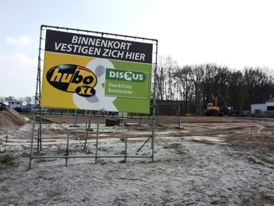 Ook is er een baan rijplaten aangebracht voor de telescoopkraan. Het is de bedoeling dat de nieuwe Hubo XL en Dier en Tuin in september hun deuren openen.